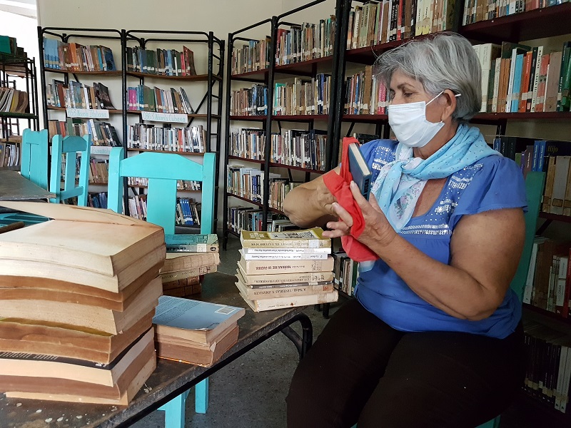 Teddys Pérez Móns, programadora de la institución, refirió que el colectivo dedicó la jornada a desenpolvar el fondo bibliográfico y el mobiliario, así como a limpiar y adecuar las salas de la instalación a los nuevos requerimientos.