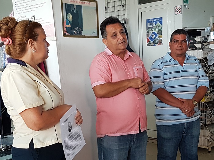Los trabajadores de la tienda TRD Caribe del municipio Sandino realizaron este miércoles un acto por el inicio de la jornada de actividades dedicada al centenario de la muerte del patriota insigne del territorio, Manuel Lazo Valdés.
