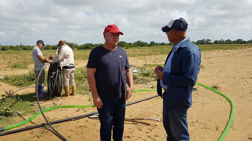 Más tarde visitaron los sembrados del campesino Teófilo Puyares Peña, de la Cooperativa Leonardo Cangas en Las Pulgas, un gran productor de boniato, quien recolectó unos 1200 quintales el año anterior y augura cifras similares para esta cosecha.