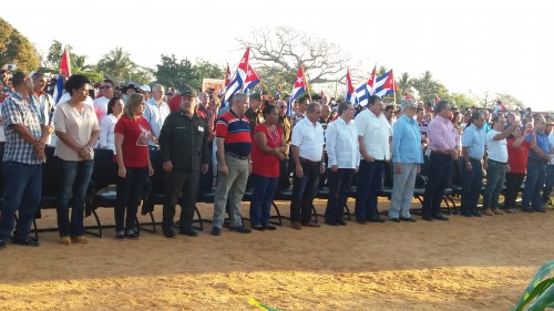 Presidieron el acto José Ramón Monteagudo Ruiz, miembro del Comité Central del Partido Comunista de Cuba, Rafael Santiesteban Pozo, miembro del Consejo de Estado y Presidente de la Asociación Nacional de Agricultores Pequeños, invitado especial el Comandante del Ejército Rebelde y Miembro del Comité Central Julio Camacho Aguilera y Gustavo Rodríguez Rollero, Ministro de la Agricultura.