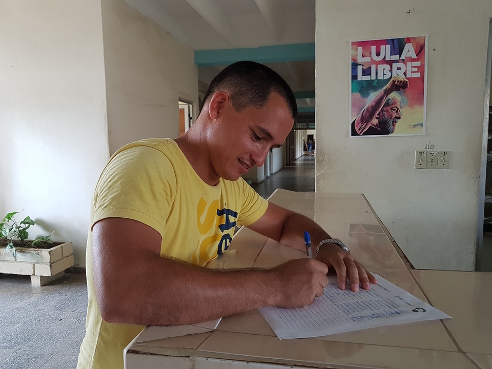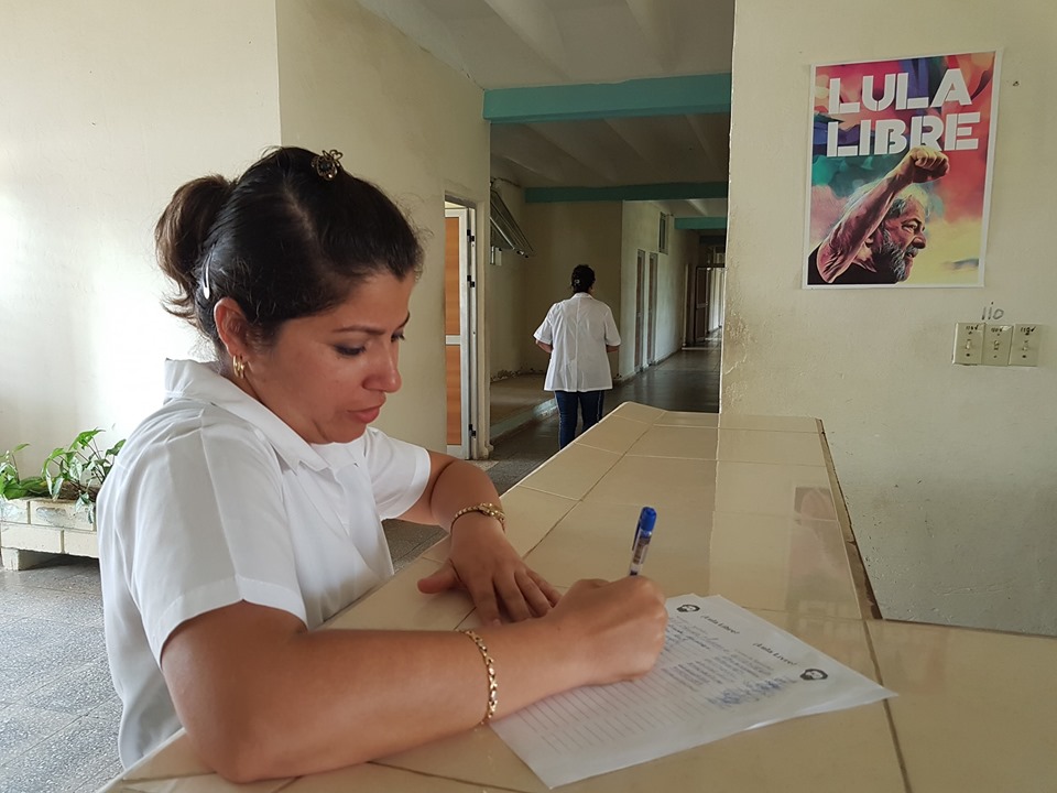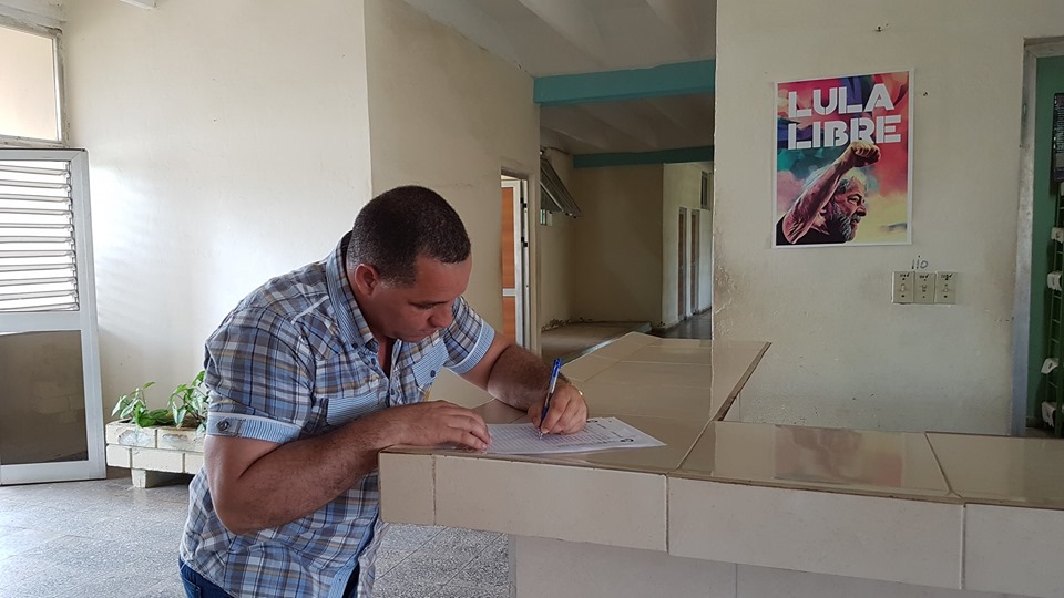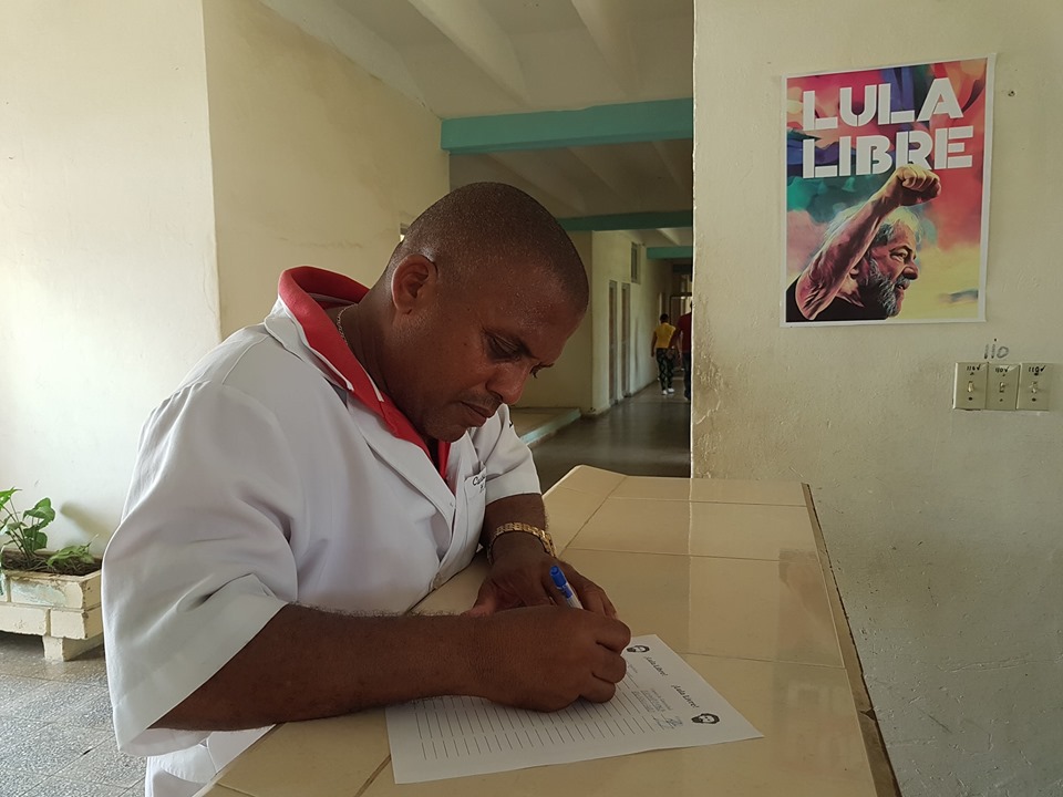 Sandino – «…Cada ser humano, cada ser humano progresista debe firmar por #LulaLibre, ya que Lula es un líder progresista que está a favor del pueblo , de la humanidad, que salió del pueblo … » es el criterio del Jefe de los servicios médicos en el territorio, Dr Carlos Gabriel Hernández Silva puesto de manifiesto en la tarde de este jueves al tiempo que ofreció incondicionalmente su firma en apoyo a la liberación del expresidente brasileño Luis Inácio Lula Da Silva.