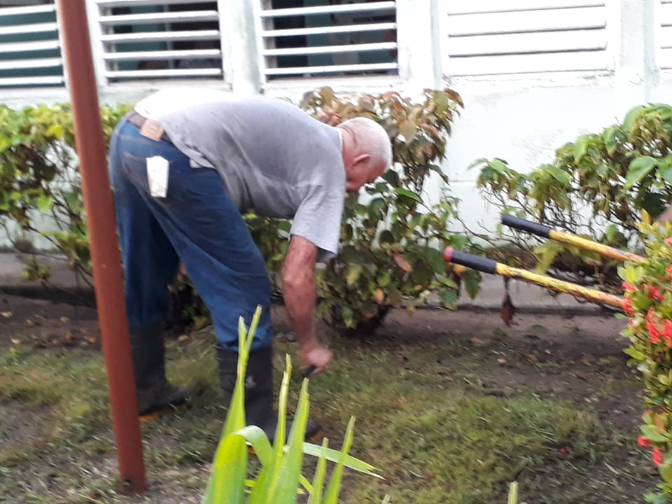 Acostumbrado a esta labor este sandinense de 76 años de edad logra una cultura en el manejo de las áreas verdes de la sede municipal del Órgano de Gobierno y el edificio de organismos.